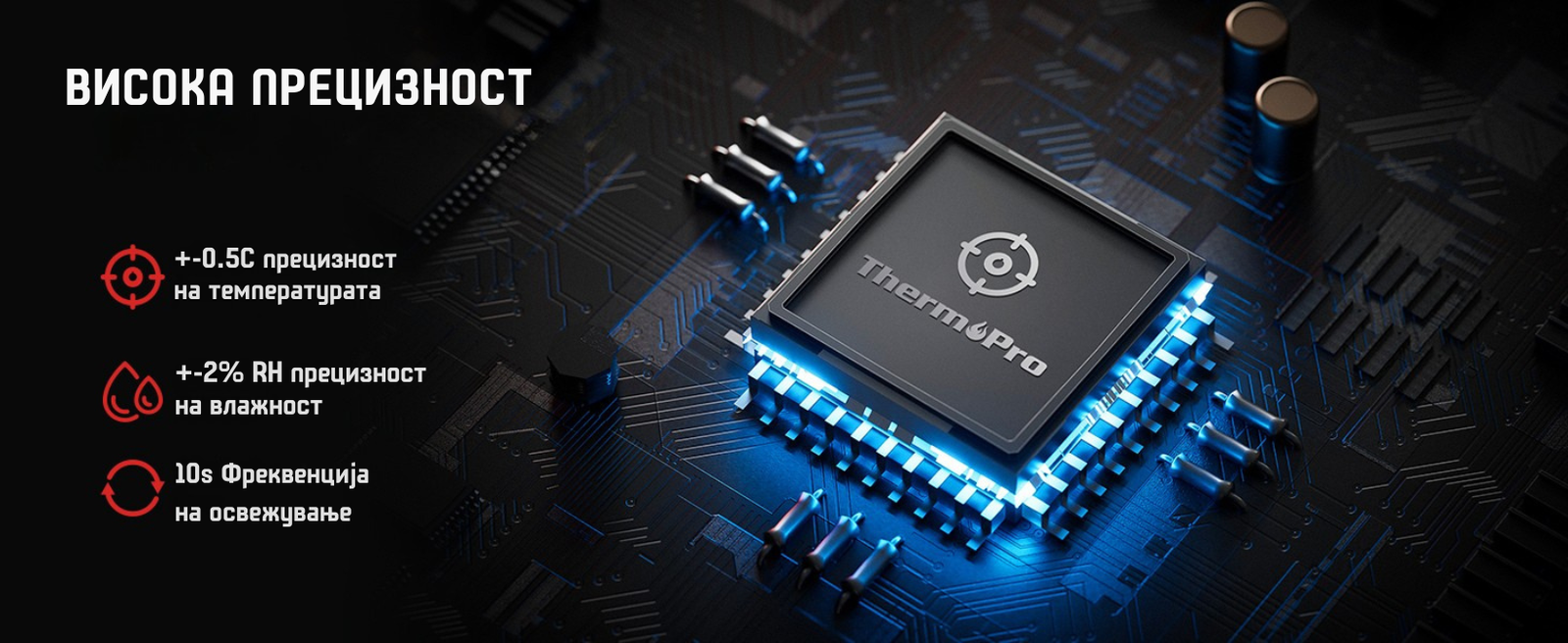 ThermoPro реномирана компанија специјализирана за производство на прецизни мерни уреди, наменети како за домашна, така и за професионална употреба. Со години присутна на светскиот пазар, ThermoPro е препознатлива по својата посветеност на квалитетот, прецизноста и иновациите.
